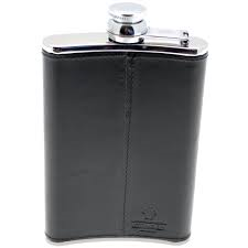 Shiny, black, leather-bound hip flask. Shiny, black, leather-bound hip flask.